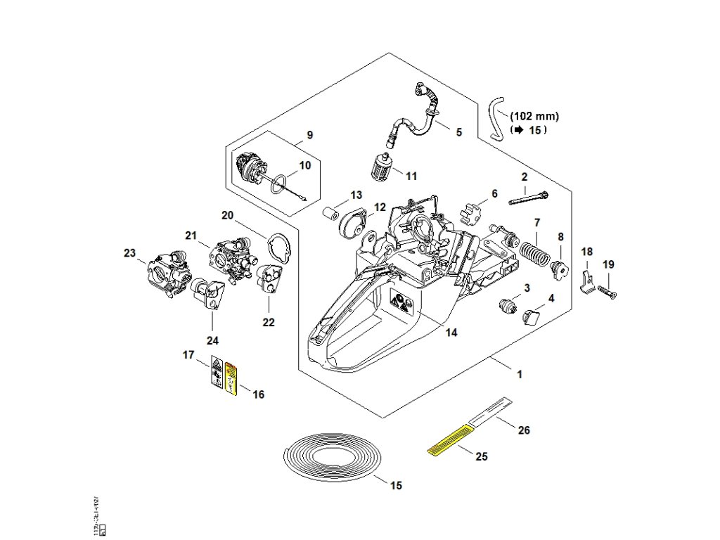 MS 361 / G - teleso nádržky / Náhradný diel číslo: 1, Teleso nádržky, obsahuje diely č.: 3,4,5,6,7,8,9,10,11,12,13,14 2