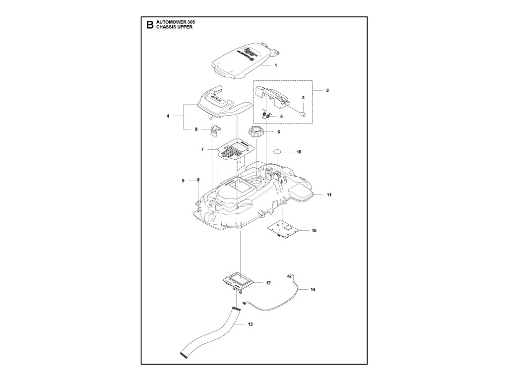 AUTOMOWER® 305 / Horný podvozok / Náhradný diel číslo: 12, Plošný spoj - zostava