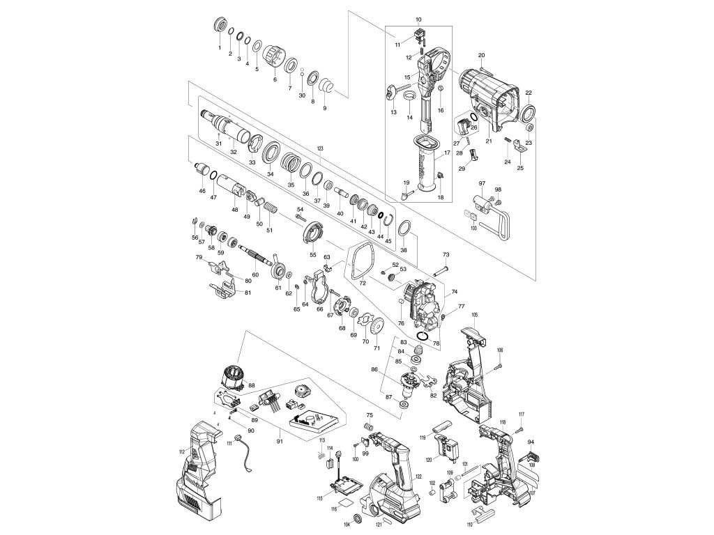HR001G / Náhradné diely Makita: 123 DRŽIAK NÁSTROJA DHR280/2