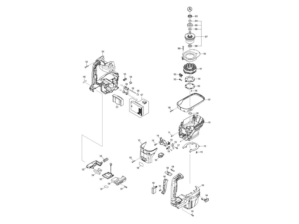 HR005G / Náhradné diely Makita: 110 KRYT MOTORA DHR400