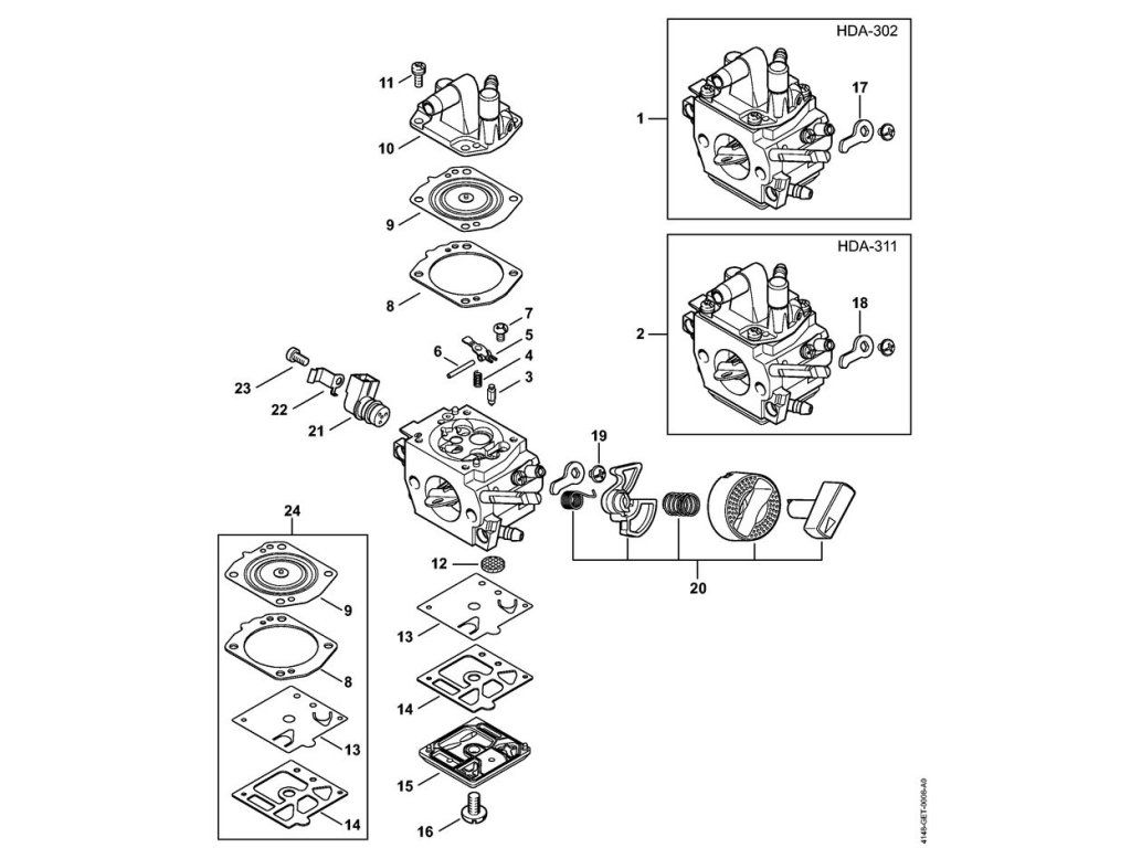FS 560 C-EM / I - karburátor hda-302, hda-311 / Náhradný diel číslo: 1, Karburátor HDA-302A, obsahuje diely č.: 3,4,5,6,7,8,9,10,11,12,13,14,15,16,18,19,20,21,22,23