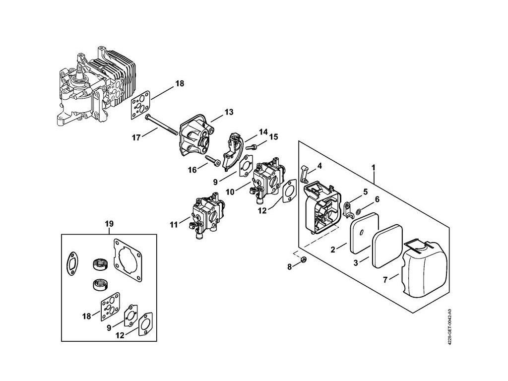 HS 45 2-MIX / I - vzduchový filter, medzipríruba 2-mix / Náhradný diel číslo: 10, Karburátor 4228/13