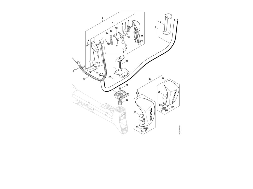 FS 311 / K - dvojručná rukoväť / Náhradný diel číslo: 24, Ochrana ruky, obsahuje diely č.: 25,26,27,28