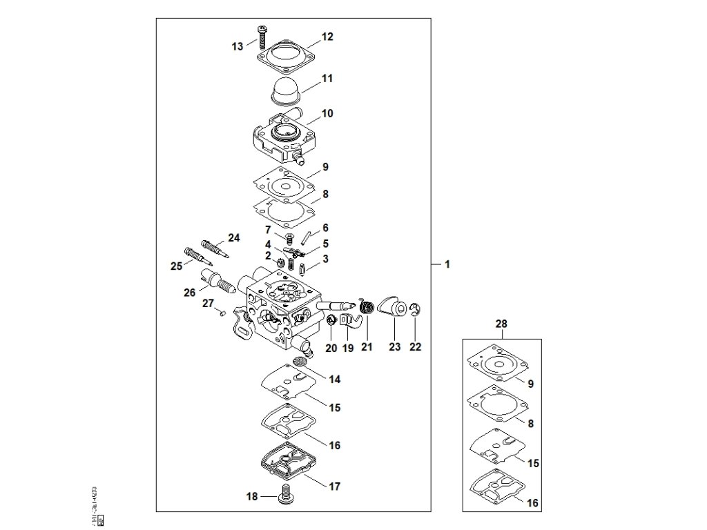 Fs 460 / Karburátor 4147/23 / Náhradný diel číslo: 1, Karburátor 4147/23, obsahuje diely č.