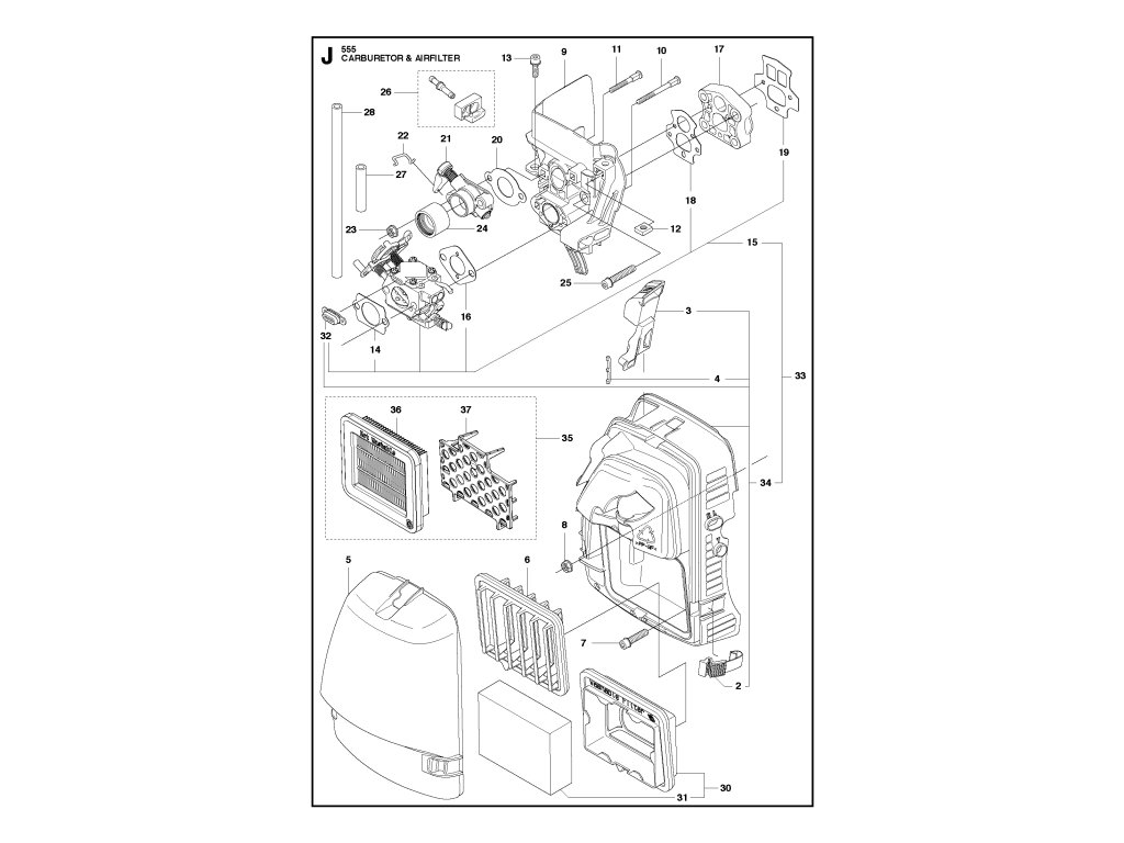 555RXT / Karburátor a vzduchový filter / Náhradný diel číslo: 33, Sada karburátora s/n do - 20130600066