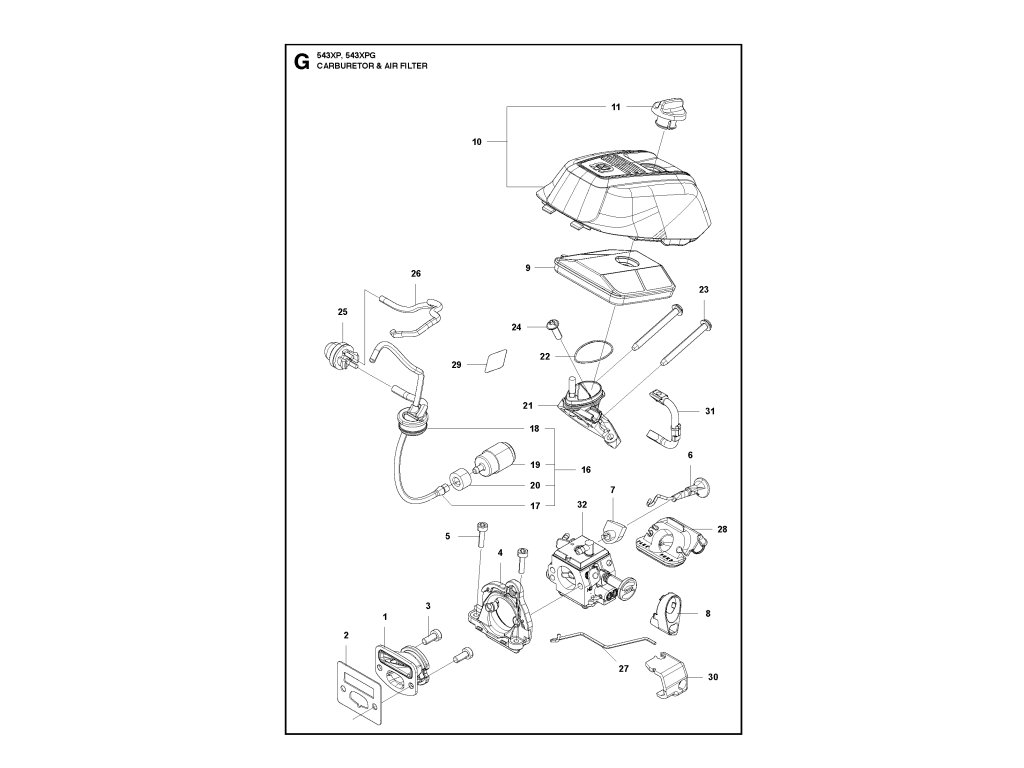 543 XP® / Karburátor a vzduchový filter / Náhradný diel číslo: 32, KARBURÁTOR s/n up to — 20171915387, for EU/US only
