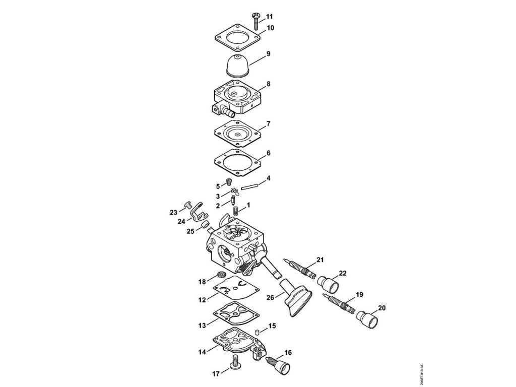 BG 56 / Karburátor c1m-s260 (037.2018) / Náhradný diel číslo: -1, Karburátor C1M-S260E, obsahuje diely č.: 1,2,3,4,5,6,7,8,9,10,11,12,13,14,15,16,17,18,19,20,21,22,23,24,25,26