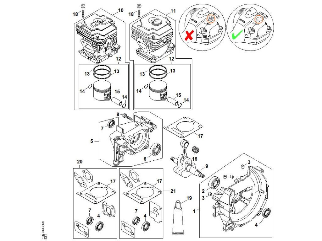 Fs 460 c-em / Kľuková skriňa, valec / Náhradný diel číslo: 21, Súprava tesnenia, obsahuje diely č.