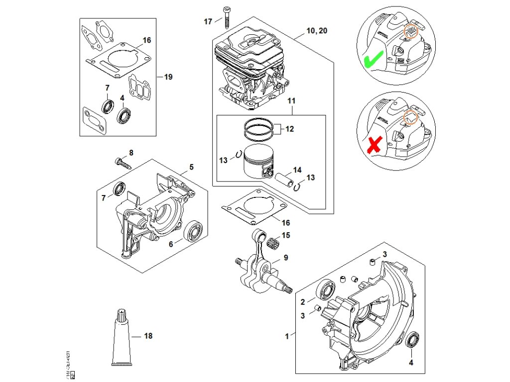 Kľuková skriňa, valec / Náhradné diely Stihl
