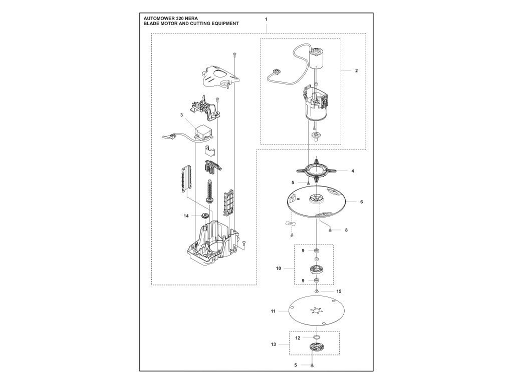 Automower® 320 NERA / Kosiaci motor a rezné zariadenie / Náhradný diel číslo: 1, CUTTING MODULE Cutting module