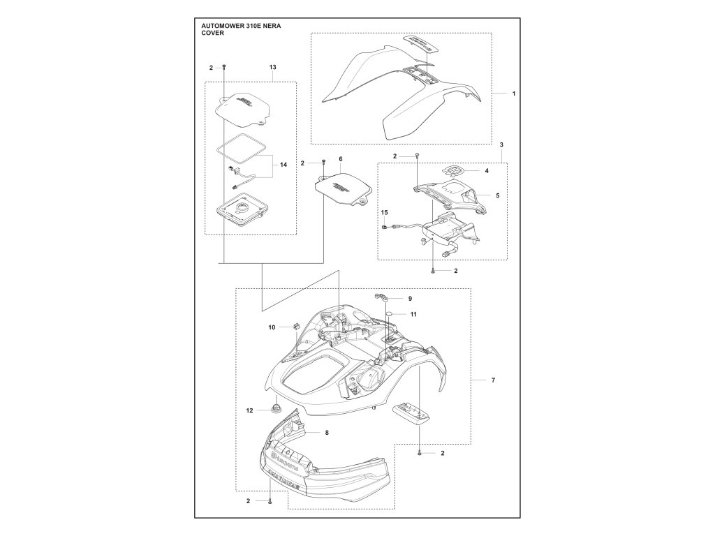 Automower® 310E NERA / Kryt / Náhradný diel číslo: 1, Kryt zostavy vrchného krytu