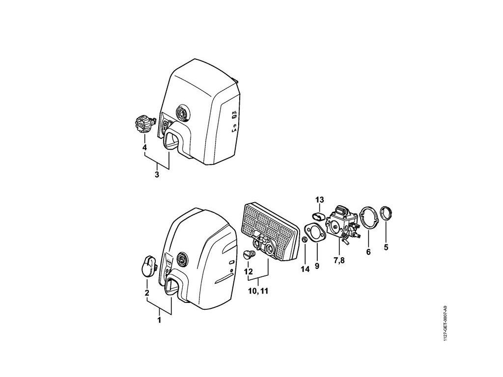 Kryt skrine karburátora, vzduchový filter / Náhradné diely Stihl