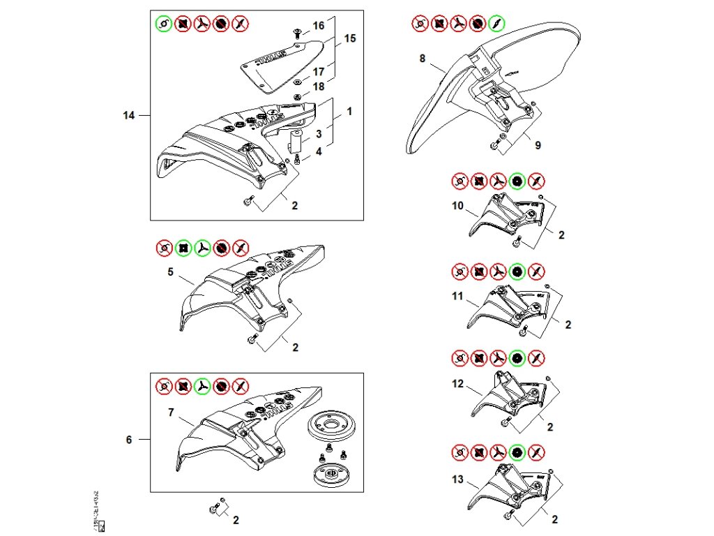 FS 311 / M - chránič / Náhradný diel číslo: 14, Chránič, obsahuje diely č.: 1,2,3,4,15,16,17,18