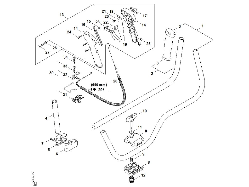 FS 450 / M - rúrková rukoväť, ovládacia rukoväť / Náhradný diel číslo: 13, Ovládacia rukoväť, obsahuje diely č.: 14,15,16,17,18,19,20,21,22,23,24,25,26,27