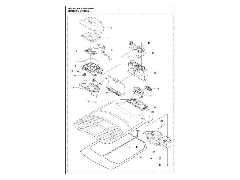 Automower® 310E NERA / Nabíjacia stanica / Náhradný diel číslo: 23, Elektrické zapojenie – zostava základová doska