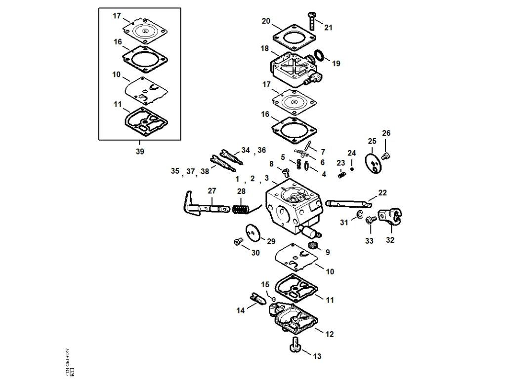 Fs 120 / O - karburátor 4134/13, 4134/14, 4134/15 / Náhradný diel číslo: 1, Karburátor 4134/13, obsahuje diely č.
