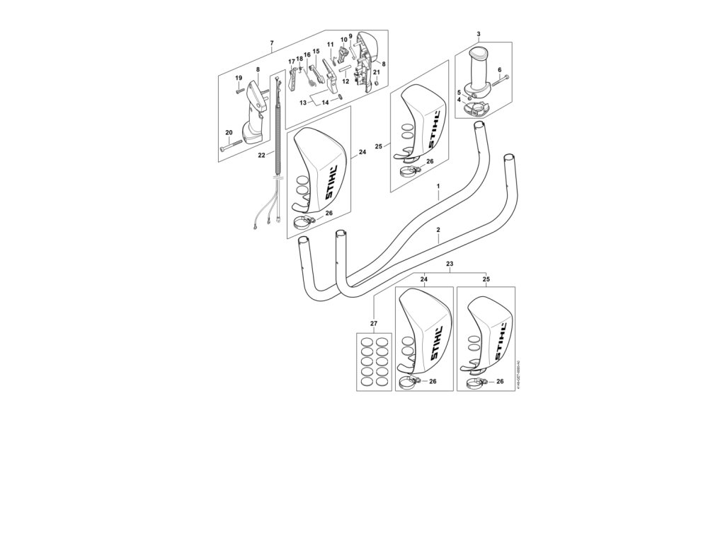 FS 561 C-EM / O - rúrková rukoväť, ovládacia rukoväť / Náhradný diel číslo: 23, Ochrana ruky, obsahuje diely č.: 24,25,26,27