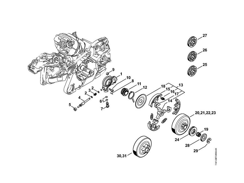 MS 261 C-M / Olejové čerpadlo, spojka / Náhradný diel číslo: 24, Reťazové koleso .325" 7z