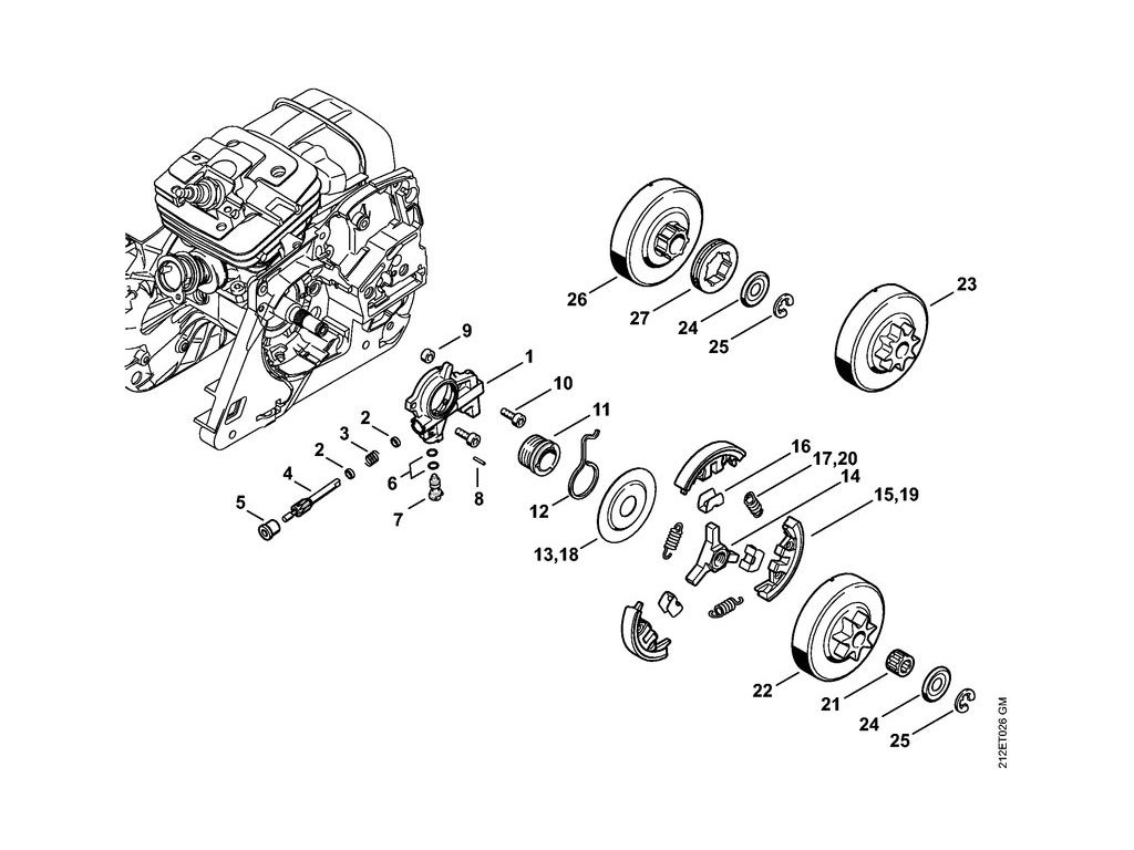 Olejové čerpadlo, spojka / Náhradné diely Stihl