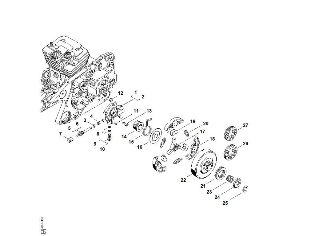 MS 441 / Olejové čerpadlo, spojka / Náhradný diel číslo: -1, Klemmpistikute komplekt AKS 011.0 (10 tk), obsahuje diely č.: 22, 24, 25, 27