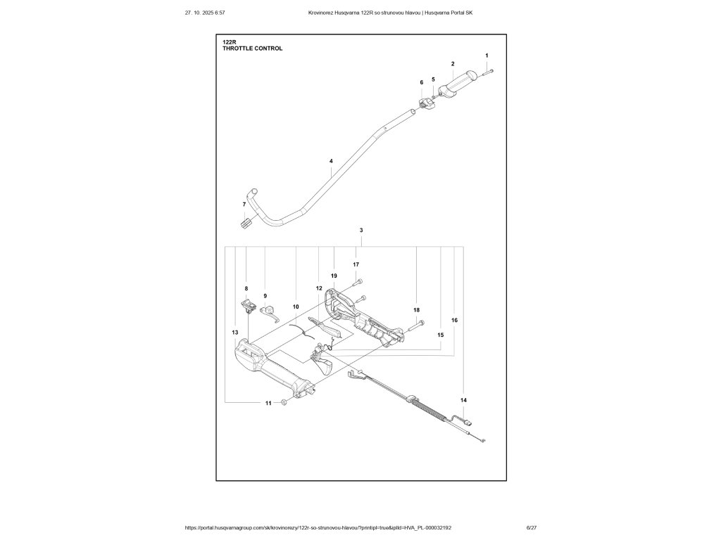 122R - OVLÁDANIE PLYNU / Náhradné diely Husqvarna: 3 545125505 TIAHLO-ZOSTAVA