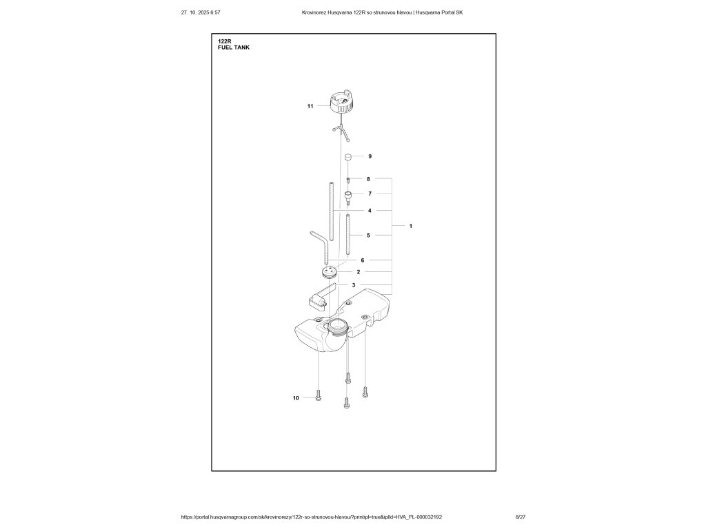 122R - PALIVOVÁ NÁDRŽ / Náhradné diely Husqvarna: 10 525755101 SKRUTKA