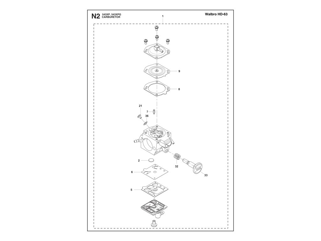 543 XP® / Podrobnosti karburátora / Náhradný diel číslo: 1, KARBURÁTOR s/n from 20172200001 (HD—63 EU, US)