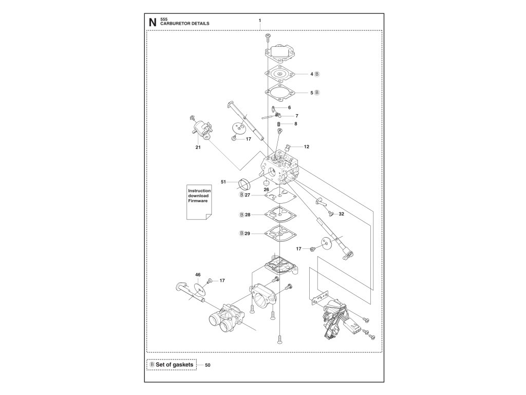 555 / Podrobnosti karburátora / Náhradný diel číslo: 50, SADA TESNENÍ B=set of gaskets