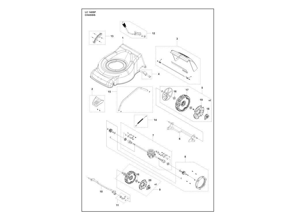 LC 140SP / Podvozok / Náhradný diel číslo: 12, Rukoväť - sada výškovej regulácie