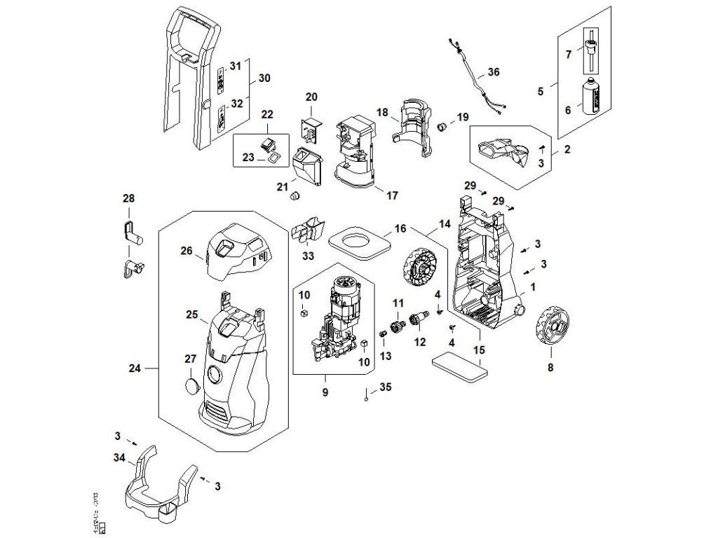 RE 100.0 PLUS CONTROL / Pojazdný vozík, vedenie vzduchu, kryt, teleso spínača / Náhradný diel číslo: 9, Motor čerpadlovej jednotky, obsahuje diely č.: 10