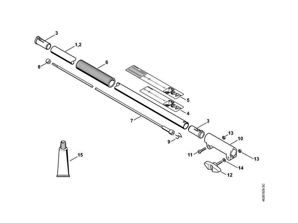 KM 130 R / Predĺženie násady 1 m ht-km / Náhradný diel číslo: 2, Násada, obsahuje diely č.: 3,5,6,7,8,9,10,11,12,13