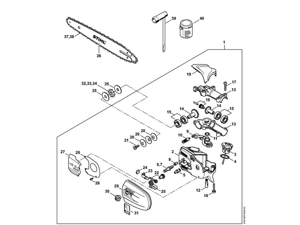 HT 56 C-E / Prevodovka / Náhradný diel číslo: 32, Reťazové koleso 1/4"P 8 Z, obsahuje diely č.: 35