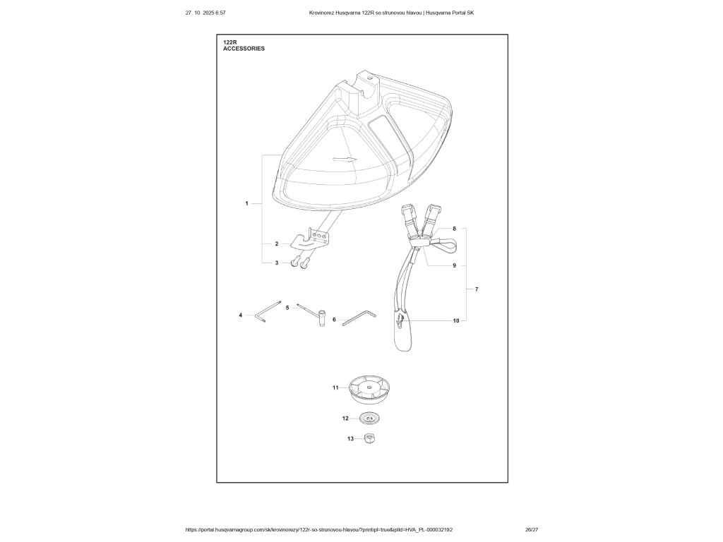 122R - PRÍSLUŠENSTVO / Náhradné diely Husqvarna: 4 575880701 FRANCÚZSKY KĽÚČ