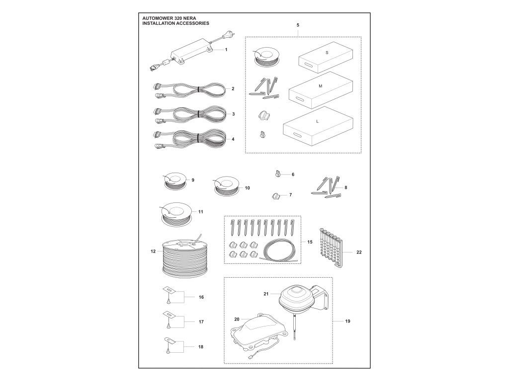 Automower® 320 NERA / Príslušenstvo pre montáž / Náhradný diel číslo: 5, Inštalačná sada L Drôt 400 m, Sponky 600 ks, Konektory 5 ks, Spojky 5 ks