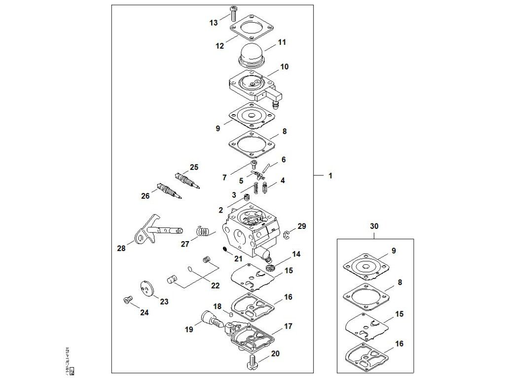FS 55 / R - karburátor c1q-s265 / Náhradný diel číslo: 30, Súprava dielov karburátora, obsahuje diely č.: 8,9,15,16