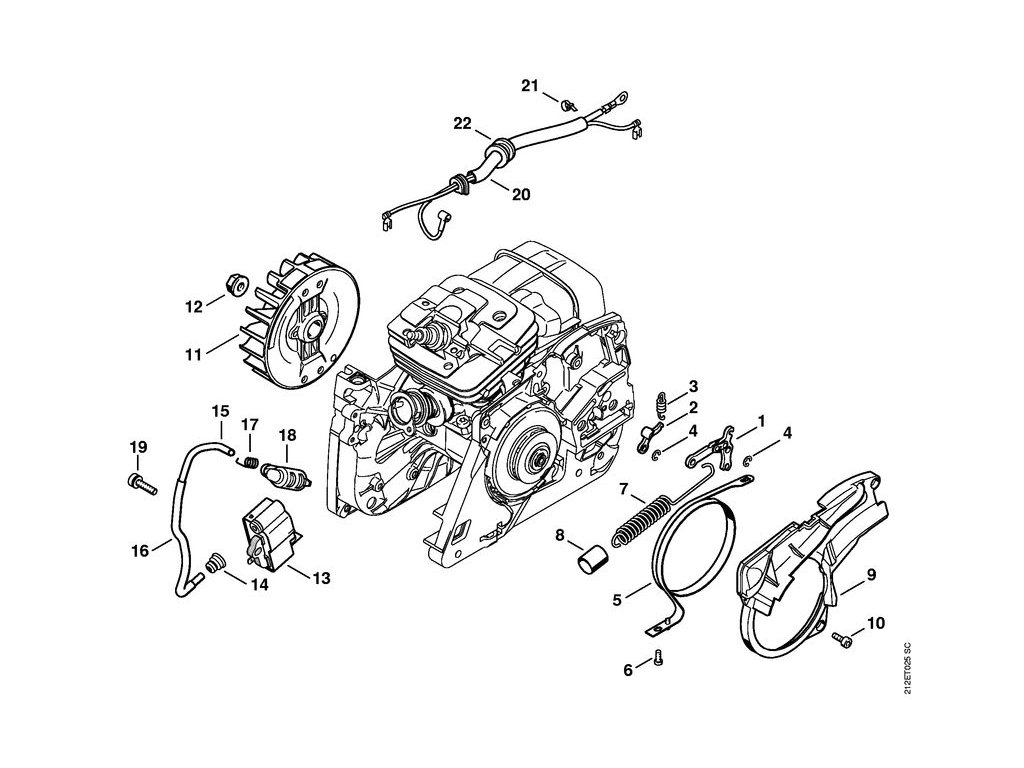 MS 341 / Reťazová brzda, zapaľovacia sústava / Náhradný diel číslo: 22, Priechodka
