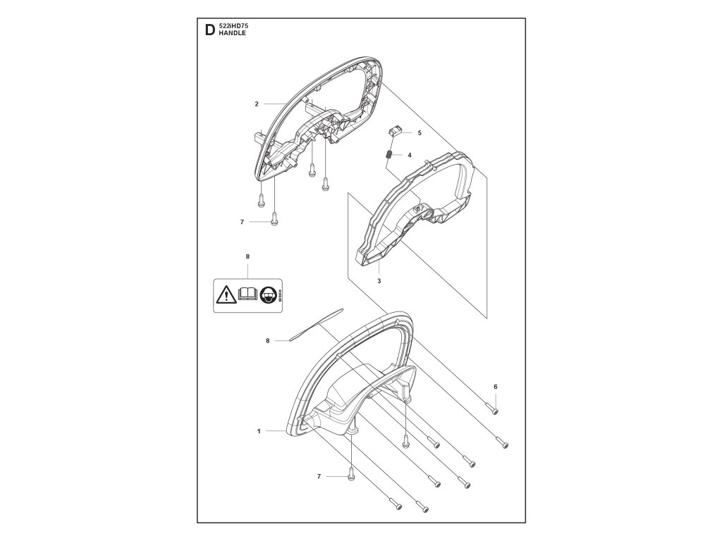 522iHD75 bez akumulátora a nabíjačky / Rukoväť / Náhradný diel číslo: 1, PREDNÁ RUKOVÄŤ