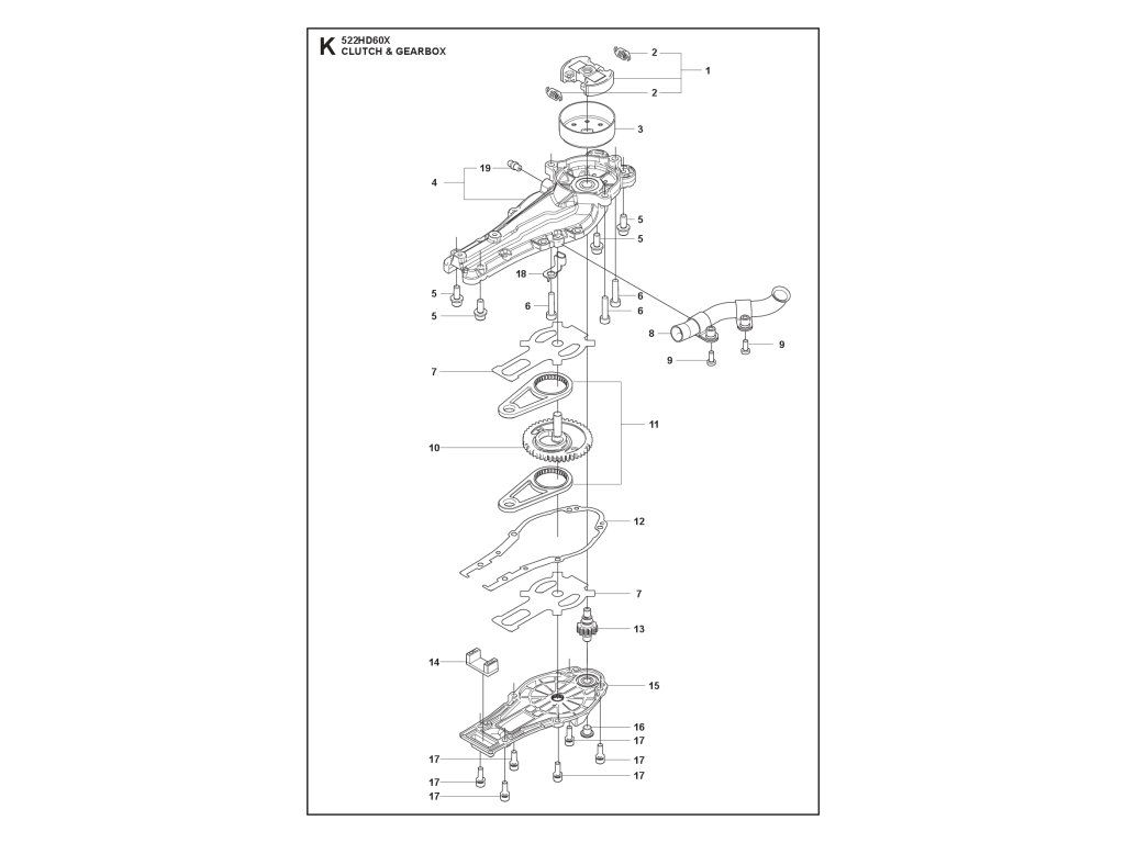 522HD60X / Skriňa prevodovky / Náhradný diel číslo: 8, TRUBIČKA VÝFUKU - ZOSTAVA