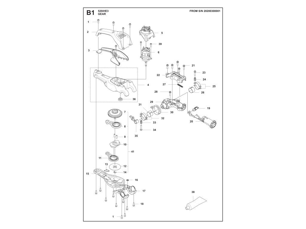 520iHE3 bez akumulátora a nabíjačky / Skriňa prevodovky / Náhradný diel číslo: 41, PREVOD - ZOSTAVA