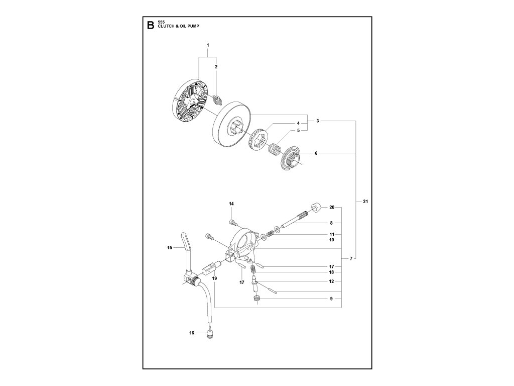 555 / Spojka a olejové čerpadlo / Náhradný diel číslo: 21, Bubón spojky - zostava