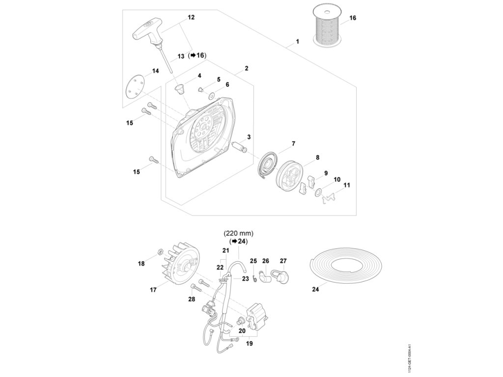 MS 881 / Štartovacie zariadenie, zapaľovacia sústava / Náhradný diel číslo: 8, Cievka s lankom