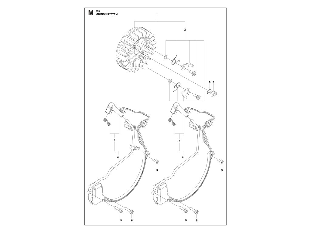 585 / Systém zapaľovania / Náhradný diel číslo: 4, Zapaľovacia sada bez tlmiča od v.č. 20223900001 -