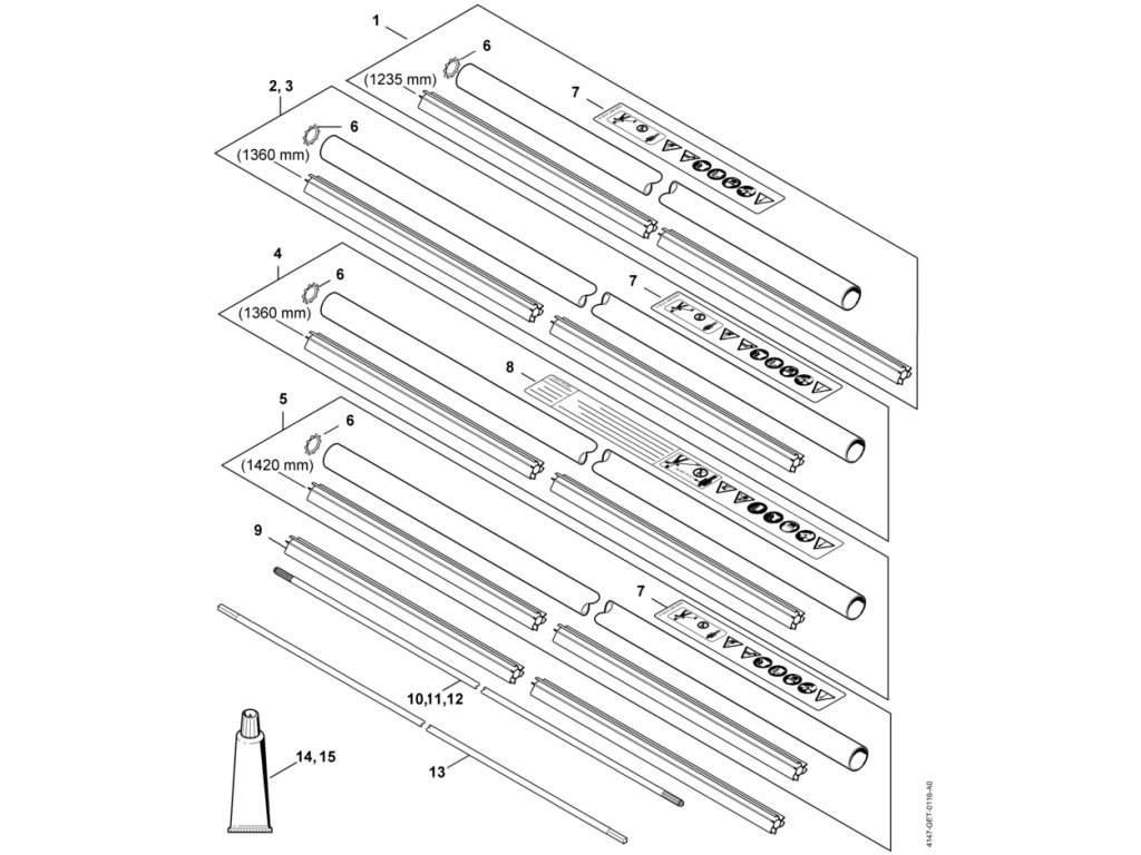 FS 360 C-EM 4147 / T - násada / Náhradný diel číslo: 2, Násada Ø 28 mm x 1,47 m, obsahuje diely č.: 6,7