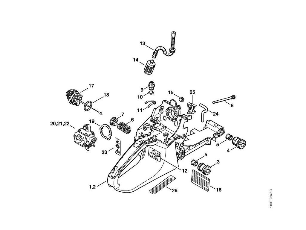 MS 280 / Teleso nádržky / Náhradný diel číslo: 9, Vetranie nádržky, obsahuje diely č.: 10