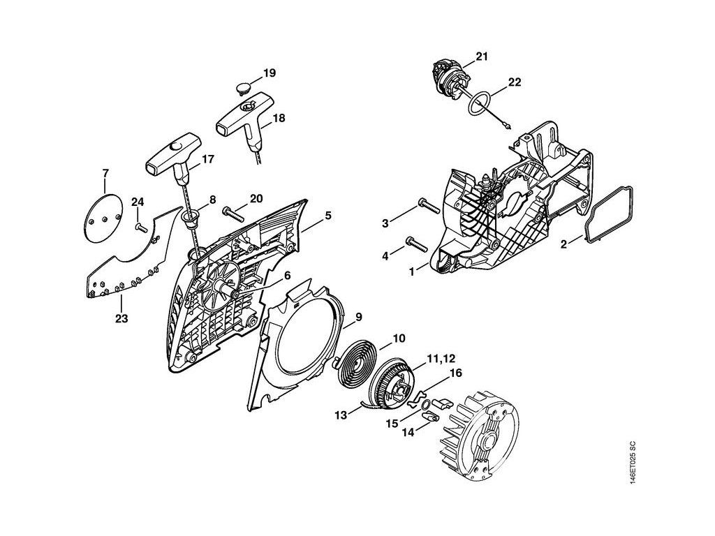 MS 280 / Teleso ventilátora so štartovacím zariadením / Náhradný diel číslo: 8, Puzdro
