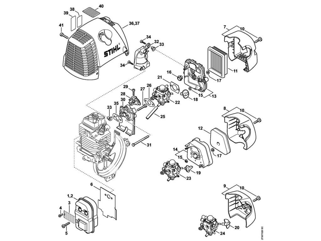 Km 130 / Tlmič výfuku, vzduchový filter / Náhradný diel číslo: 24, Karburátor c1q-s98d, obsahuje diely č.
