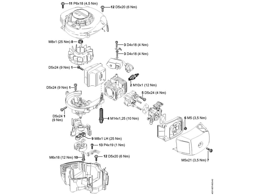 HS 82 R / Uťahovacie momenty / Náhradný diel číslo: 2, Zapaľovacia sviečka NGK CMR6H