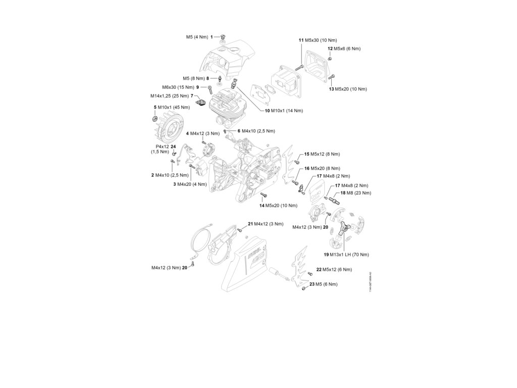 MS 661 C-M / Uťahovacie momenty / Náhradný diel číslo: 13, Skrutka IS-M5x20-12.9