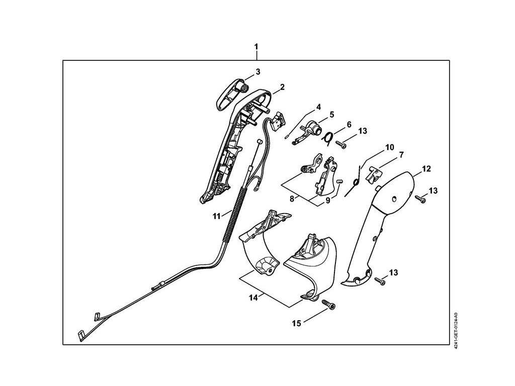 BR 200 / V - ovládacia rukoväť / Náhradný diel číslo: 1, Ovládacia rukoväť, obsahuje diely č.: 2,3,4,5,6,7,8,9,10,11,12,13,14,15
