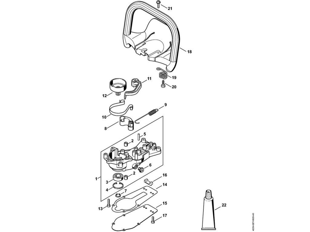 HS 45 / V - prevodovka, rúrková rukoväť s ochranou rúk / Náhradný diel číslo: 15, Veko prevodovky
